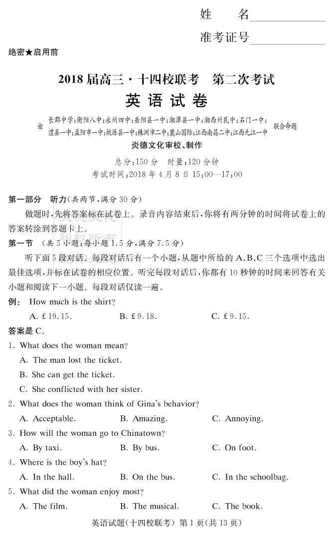 下一篇:【語文】炎德英才大聯考2018長郡中學高三8次月考(十四校聯考二)