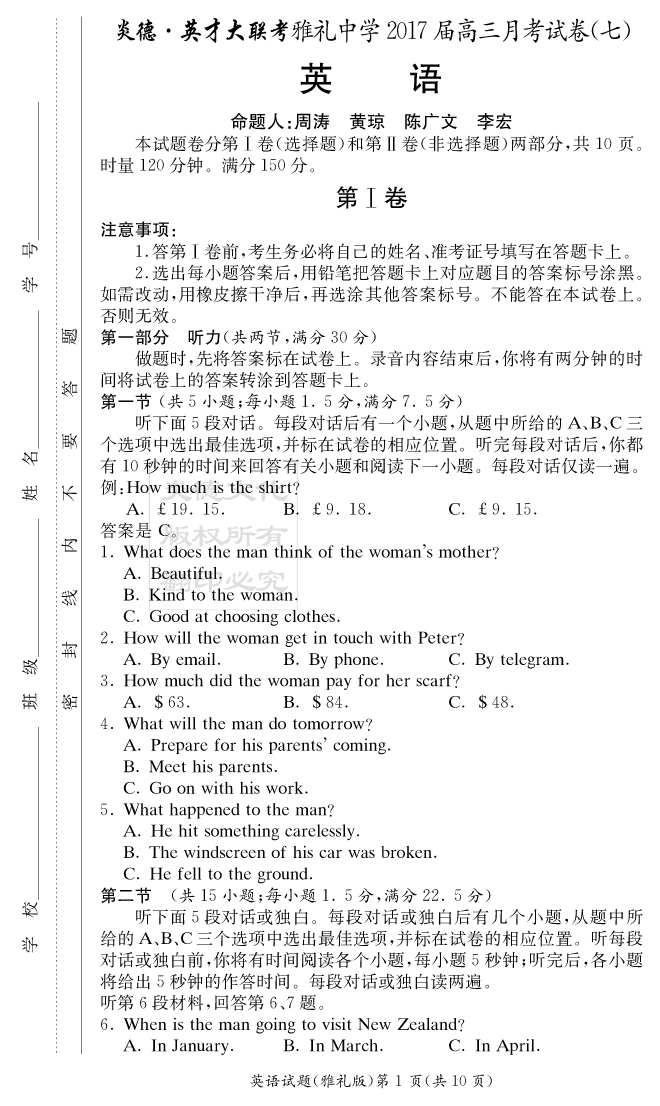 下一篇:【語文】炎德英才大聯考2017雅禮中學高三7次月考