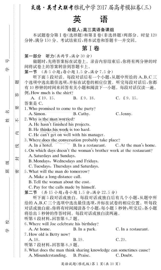 上一篇:【文綜】炎德英才大聯考2017雅禮中學高三10次月考(模擬三)