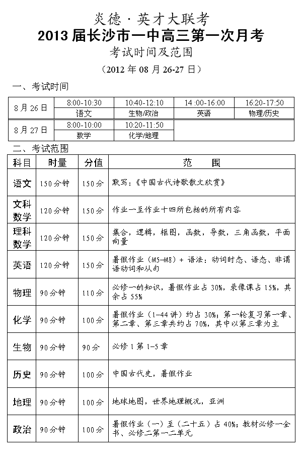 下一篇:炎德英才大聯(lián)考長沙市一中2013屆高三月考試卷考試時(shí)間和范圍(第2-11次)