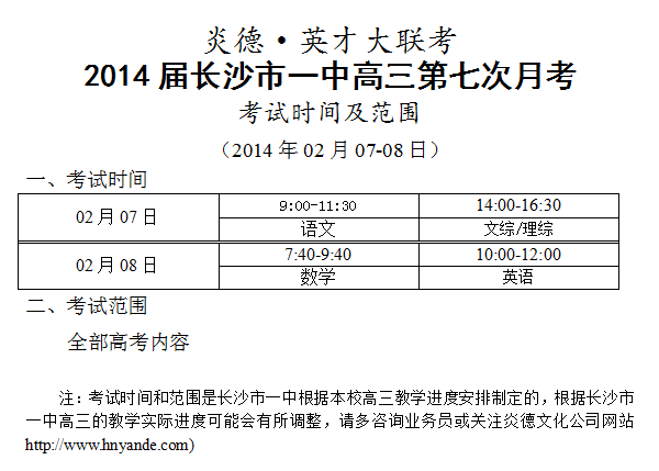 下一篇:炎德英才大聯(lián)考長沙市一中2014屆高三第8次月考考試時間和范圍(2014.03.15-16)