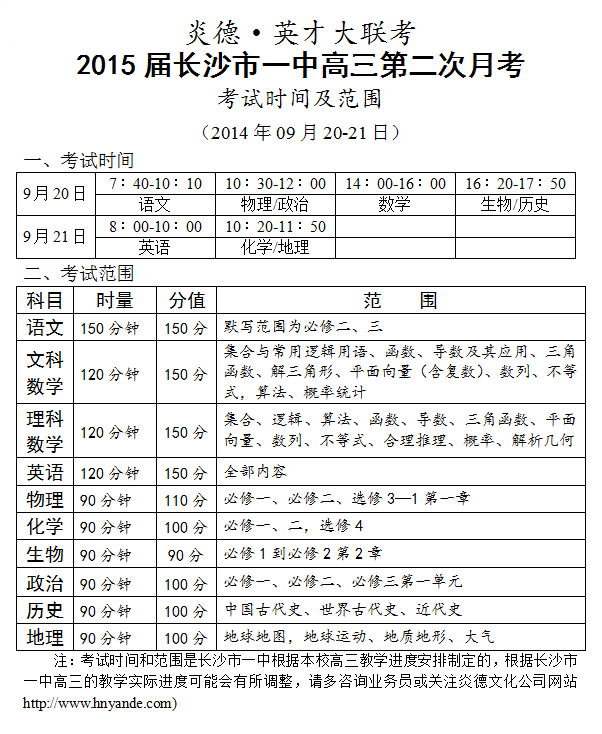 下一篇:炎德英才大聯考長沙市一中2015屆高三第3次月考考試時間和范圍(2014.10.25-26)