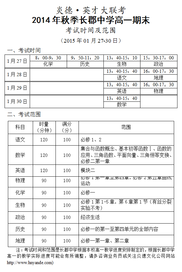 來源:炎德文化點擊:2015-01-07 14:40:47收藏本文當前位置:考試范圍 長郡中學 高一 正文