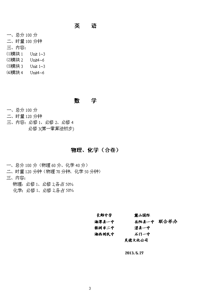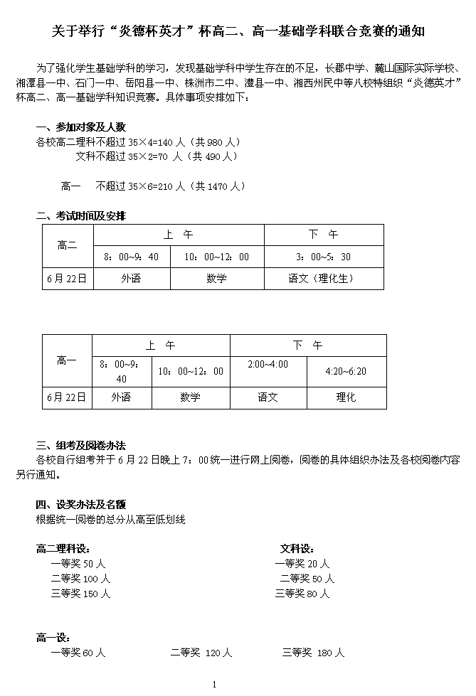 2013年高二、一基礎(chǔ)學(xué)科聯(lián)合競賽的通知(6月22日)