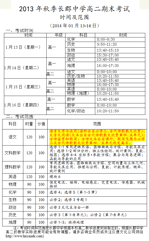 下一篇:2014年春季長郡中學(xué)高二第一次月考考試時間及范圍(2014.03.15-16)