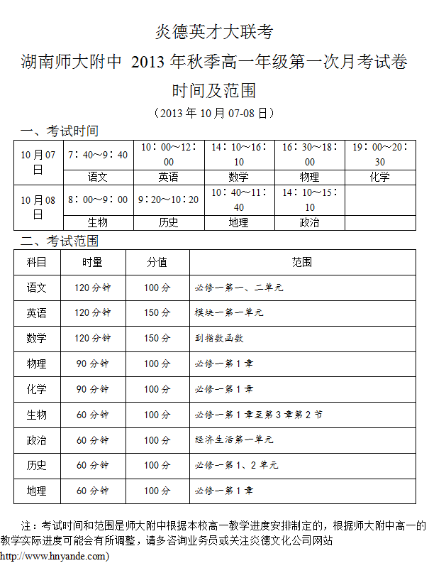 下一篇:2013年秋季師大附中高一年級期中考試時間及范圍(2013.10.06-08)