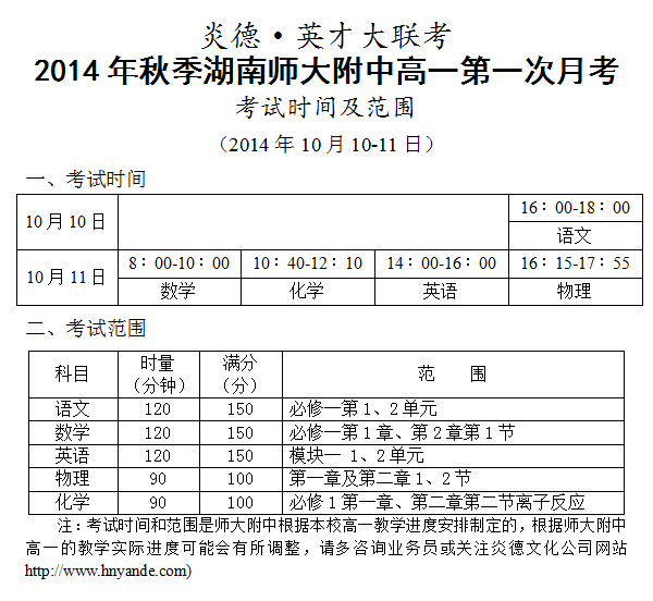 上一篇:炎德英才大聯考師大附中2014年秋季湖南師大附中高一第1-4次月考考試時間和范圍(2014.10-2015.02)