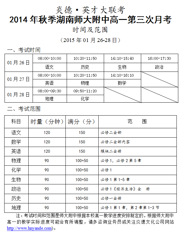 下一篇:炎德英才大聯考2014年秋季湖南師大附中高一期末月考考試時間和范圍(2015.01.26-28)
