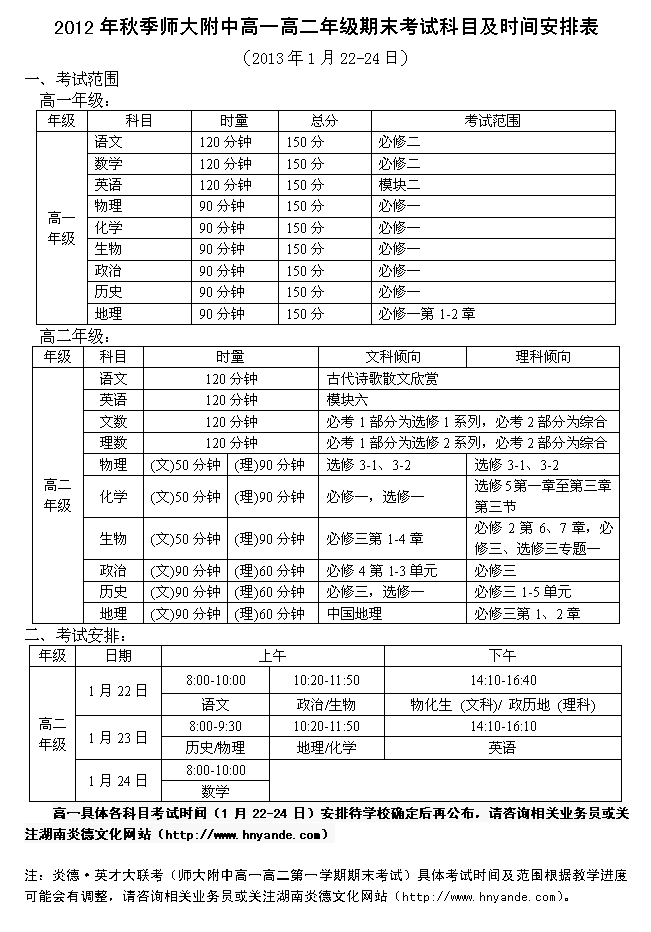 上一篇:2012年秋季師大附中高一高二第三次月考時間范圍(2012.12.15-16)