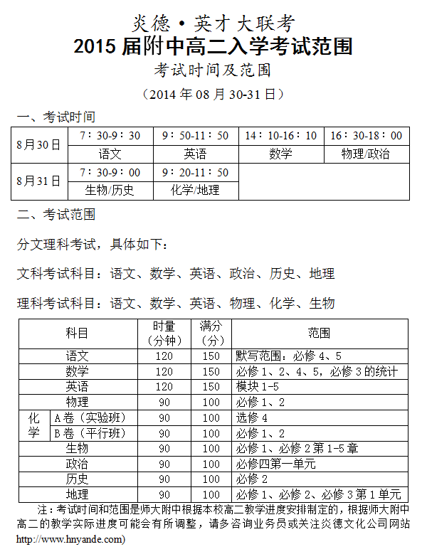 上一篇:2014年春季師大附中高二期中考試(第二次月考)考試時間及范圍(2014.04.18-19)