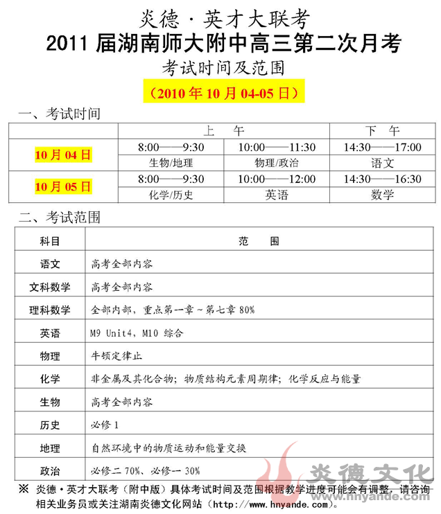 上一篇:炎德英才大聯考湖南師大附中2011屆高三第一次月考考試時間和范圍
