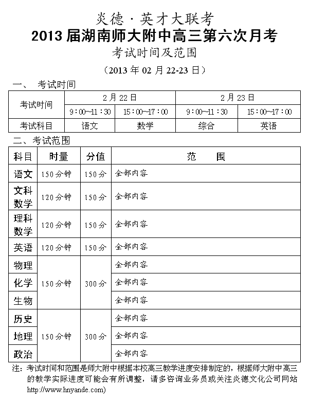 來源:炎德文化點擊:2013-02-19 17:29:58收藏本文當前位置:考試范圍 師大附中 高三 正文