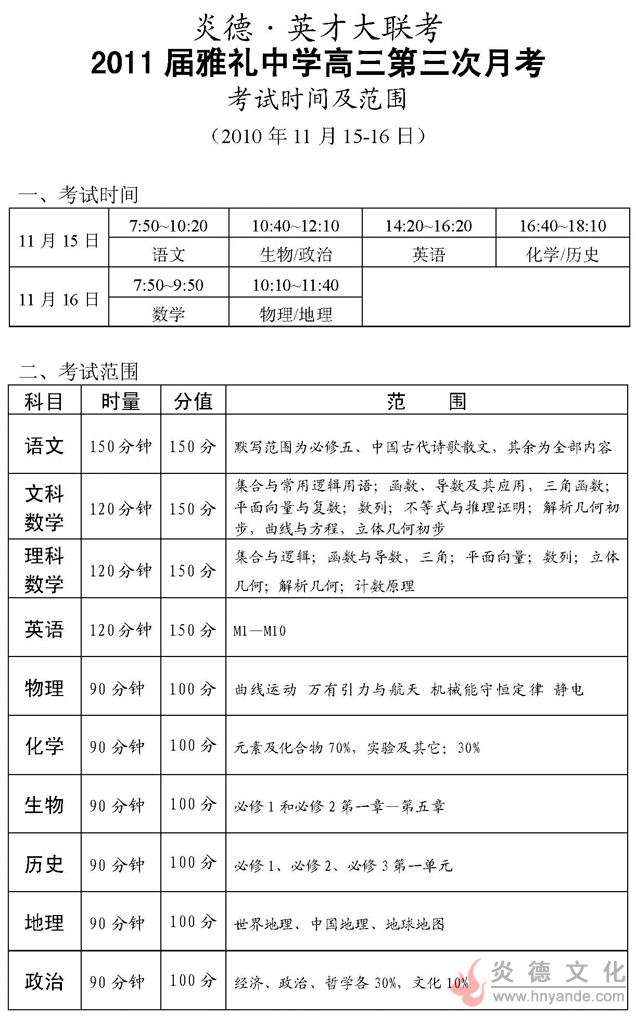 來源:本站原創(chuàng)點(diǎn)擊:2010-11-11 10:09:06收藏本文當(dāng)前位置:考試范圍 雅禮中學(xué) 高三 正文
