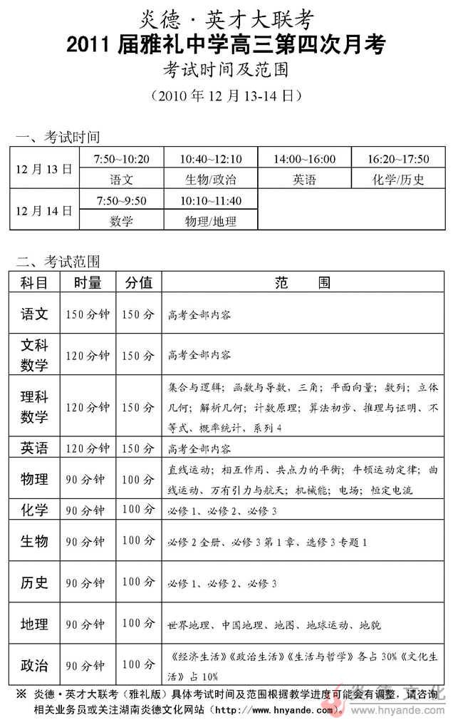來源:本站原創點擊:2010-12-07 16:34:24收藏本文當前位置:考試范圍 雅禮中學 高三 正文