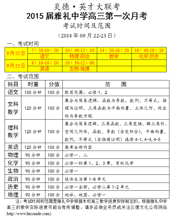 下一篇:炎德英才大聯考雅禮中學2015屆高三第2次月考考試時間和范圍(2014.10.25-26)