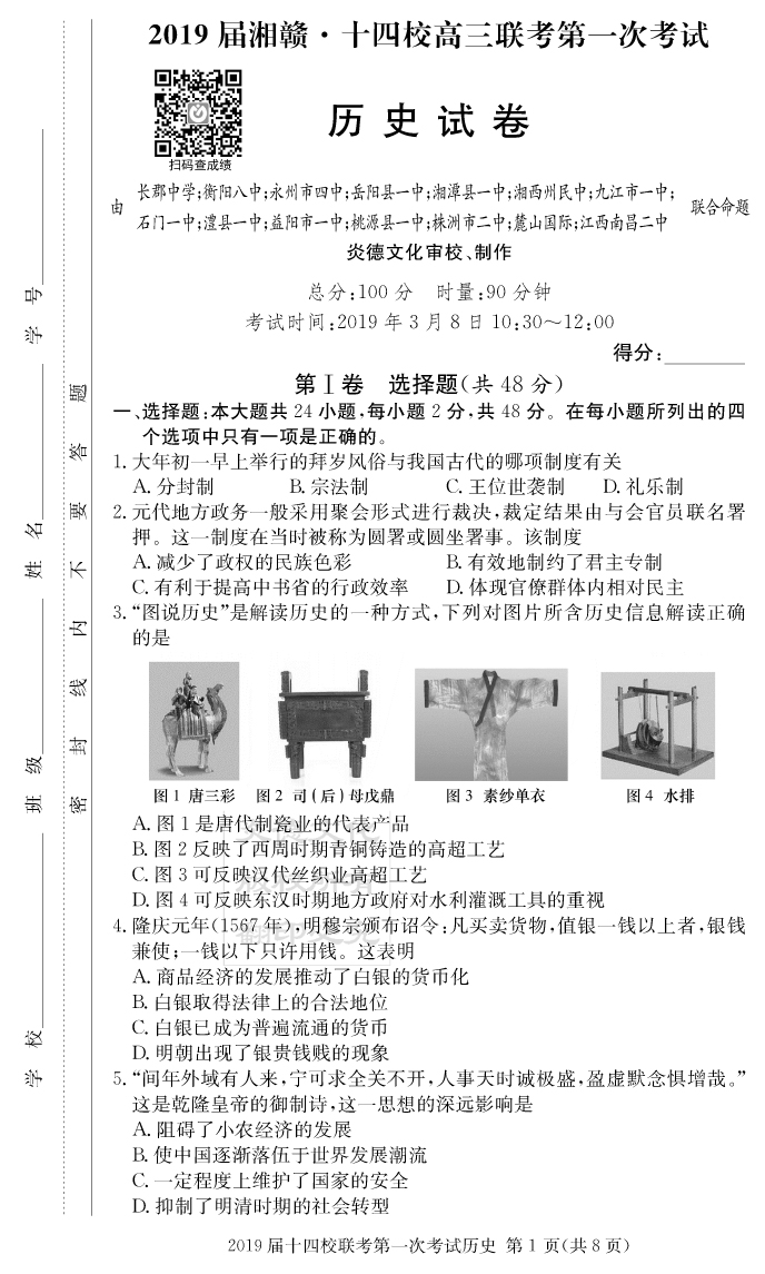2026湖南師大附中新高考考前小題訓練·歷史