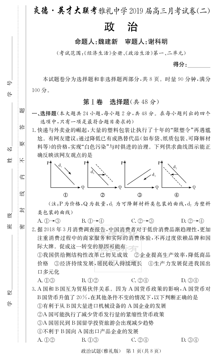 2026湖南師大附中新高考考前小題訓練·政治