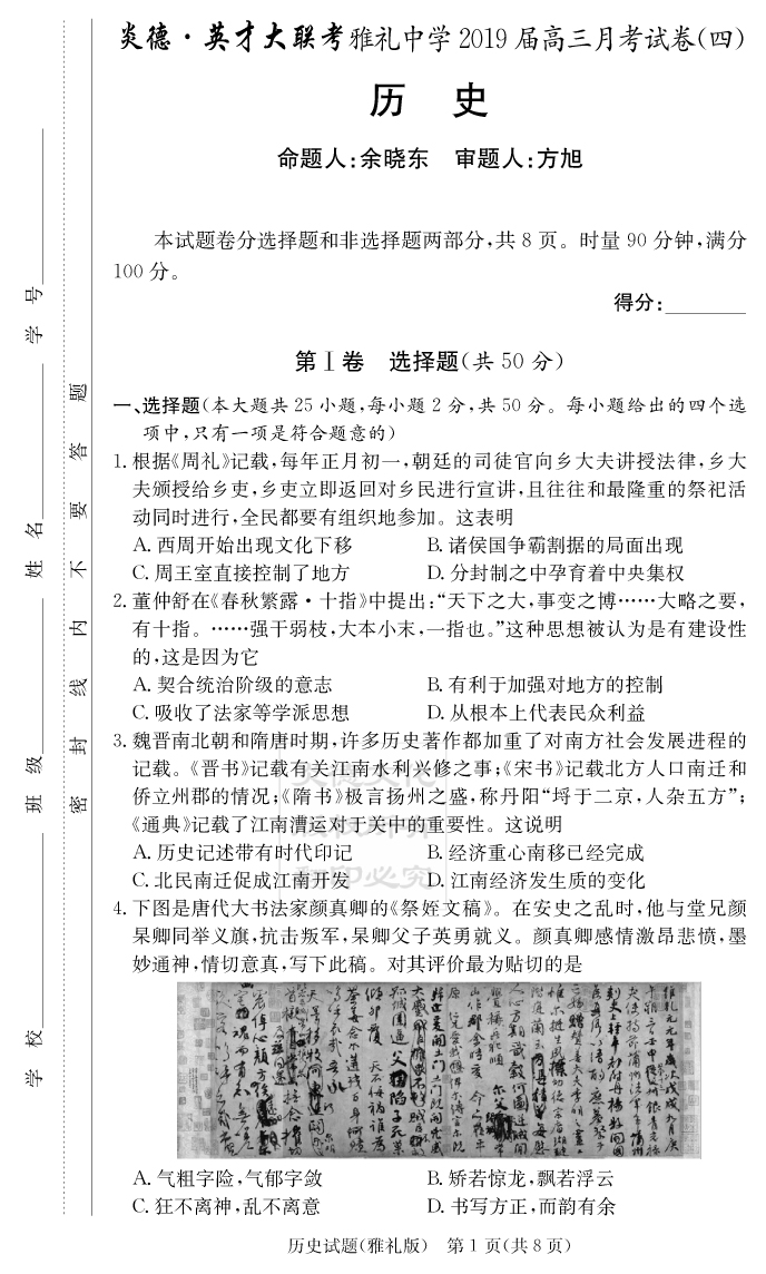 | 資源類別: | 名校月考 | |