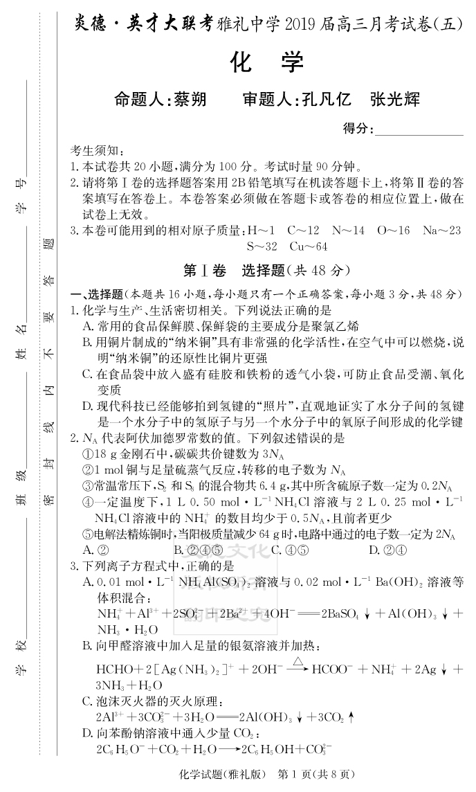 下一篇:【理數(shù)】炎德英才大聯(lián)考2019雅禮中學高三5次月考