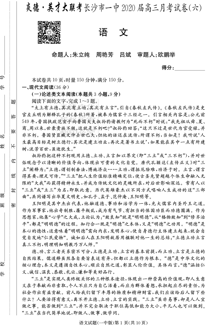 2026湖南師大附中新高考考前小題訓練·語文