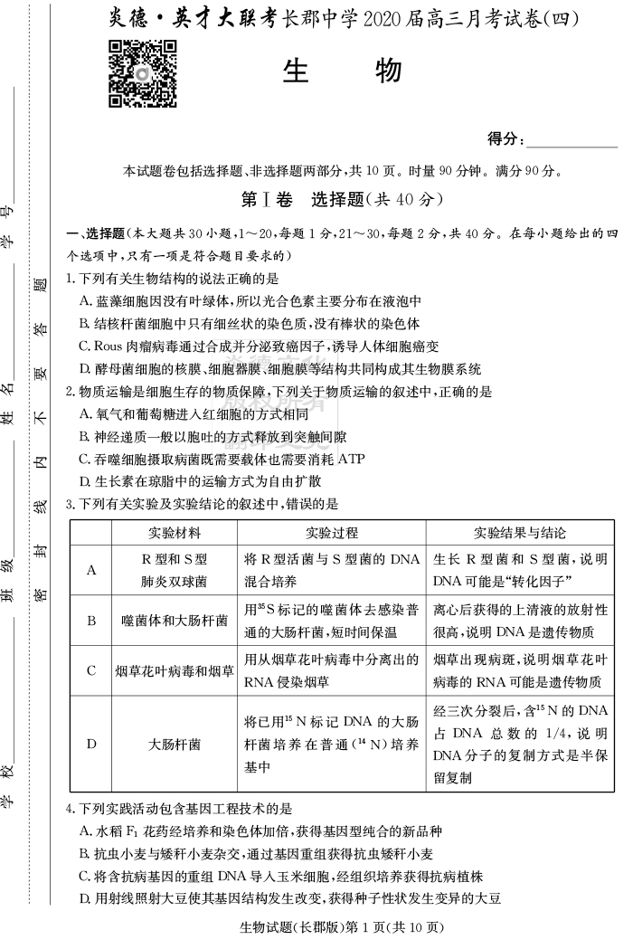 2026湖南師大附中新高考考前小題訓練·生物