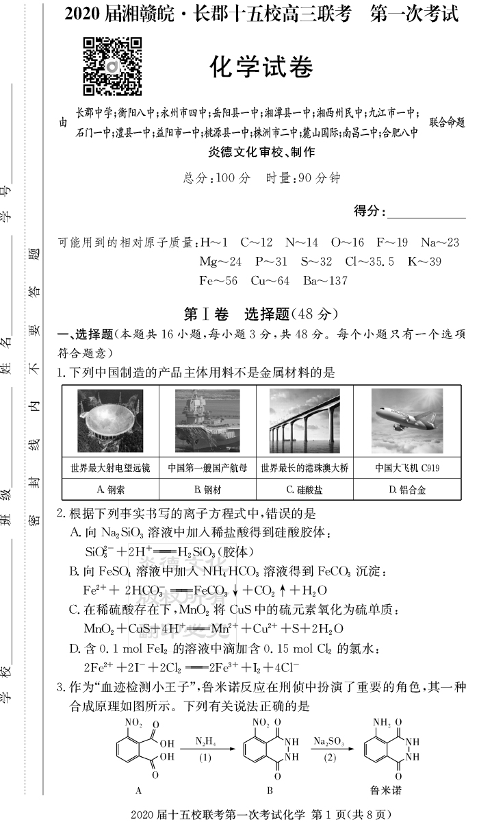 下一篇:【理數】炎德英才大聯考2020屆長郡中學高三7次月考(十五校聯考一)