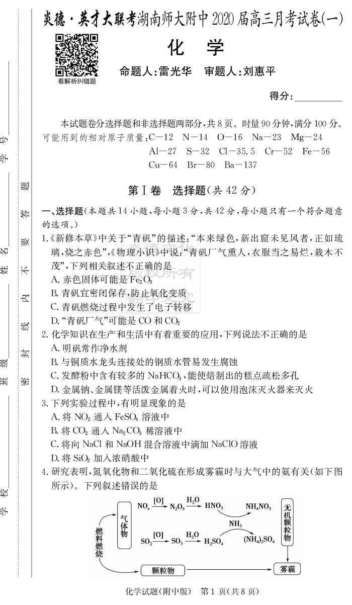 下一篇:【理數】炎德英才大聯考2020屆師大附中高三1次月考