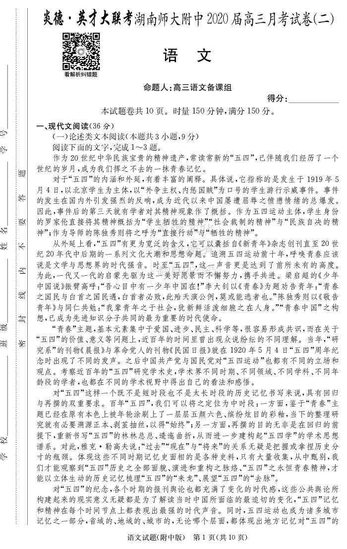 | 資源類(lèi)別: | 名校月考 | |