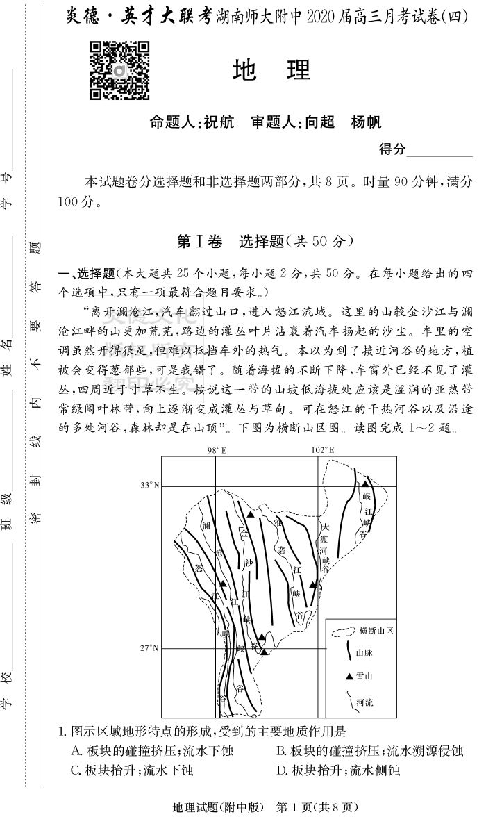 2026湖南師大附中新高考考前小題訓練·地理