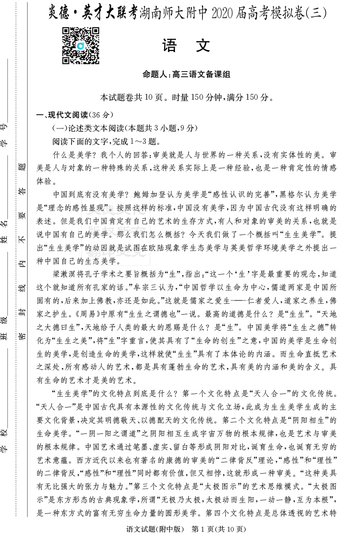 下一篇:【全科】炎德英才大聯考2020屆師大附中高三1次月考