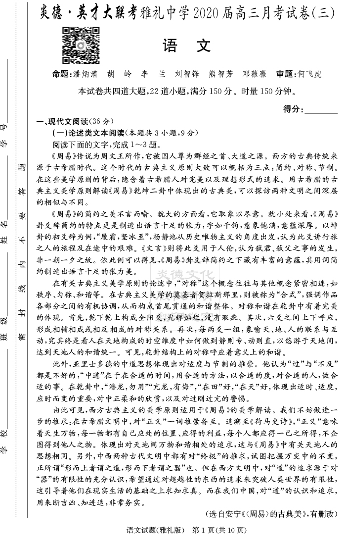 上一篇:【英語】炎德英才大聯考2020屆雅禮中學高三3次月考