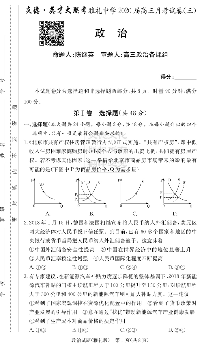 上一篇:【語文】炎德英才大聯考2020屆雅禮中學高三3次月考