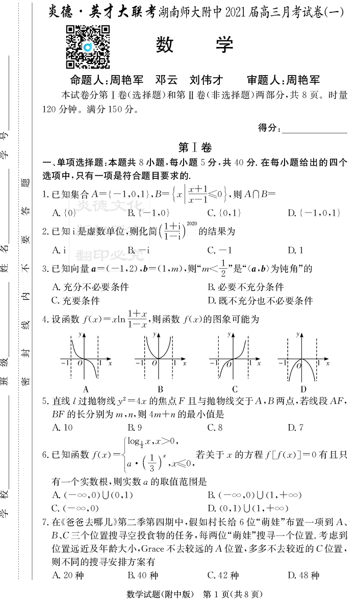下一篇:【物理】炎德英才大聯考2021屆湖南師大附中高三1次月考
