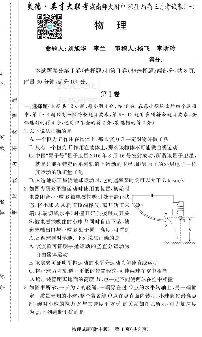 下一篇:【英語】炎德英才大聯考2021屆湖南師大附中高三1次月考