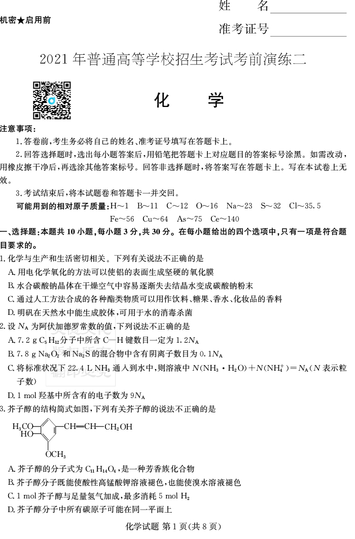 下一篇:【歷史】2021年普通高等學校招生全國統一考試考前演練(二)