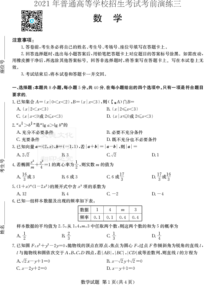 上一篇:【生物】2021年普通高等學校招生全國統一考試考前演練(三)