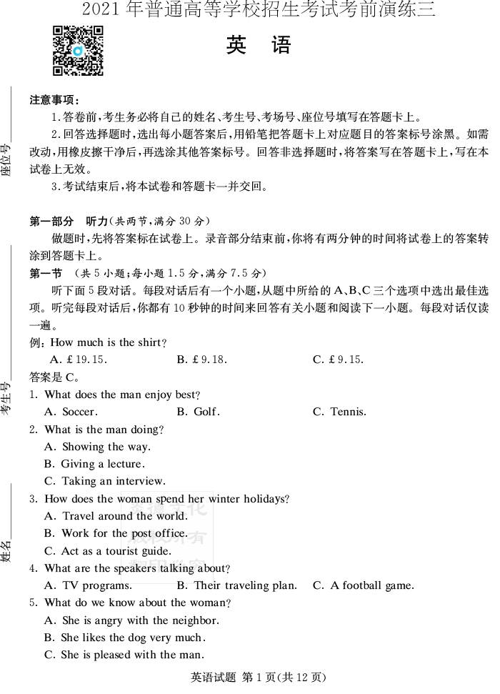 下一篇:【語文】2021年普通高等學校招生全國統一考試考前演練(三)