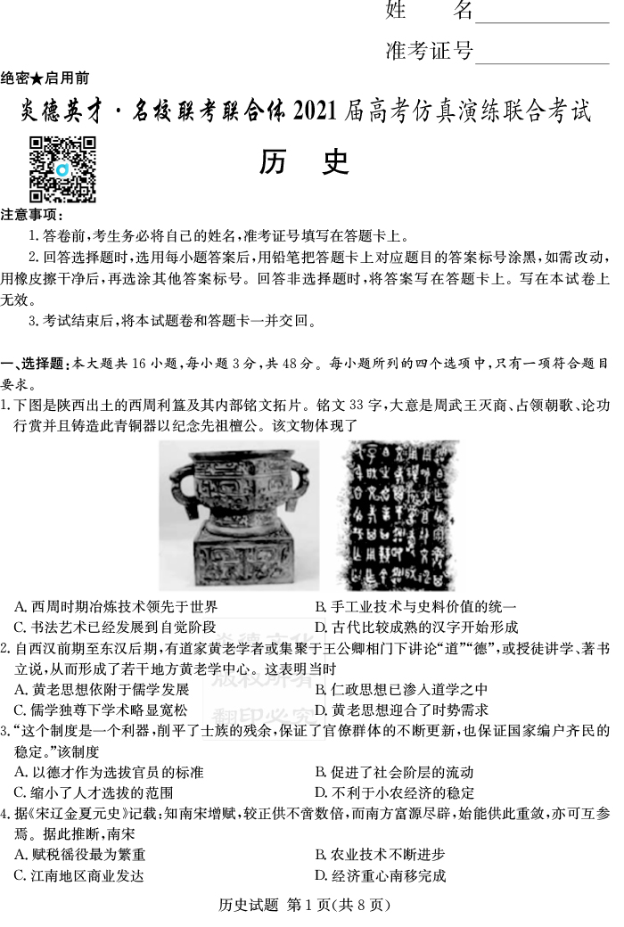 2025名師導學·名校名卷經典試題匯編·歷史