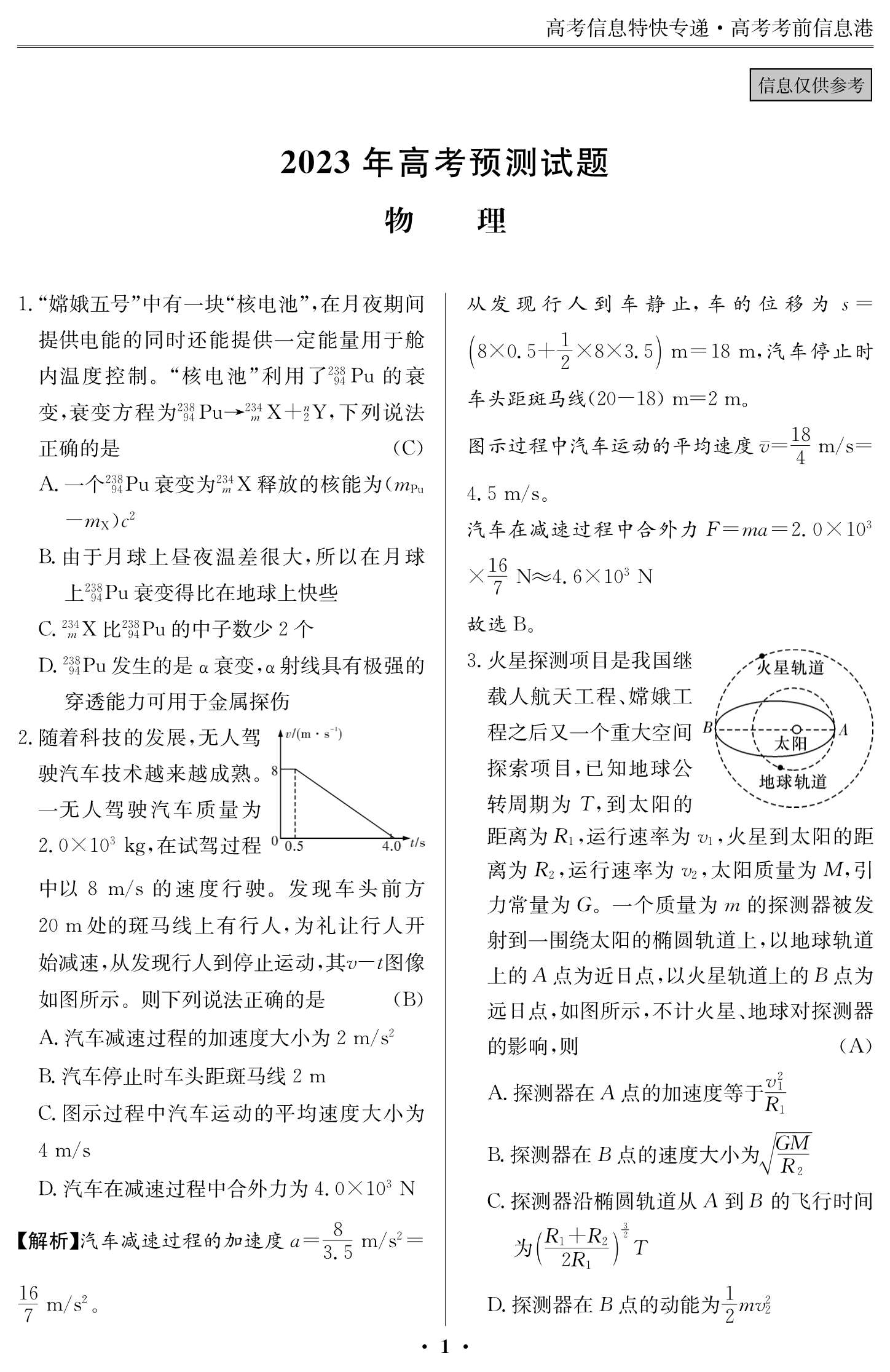 2023年高考考前預測信息補充內容(一)5月30日