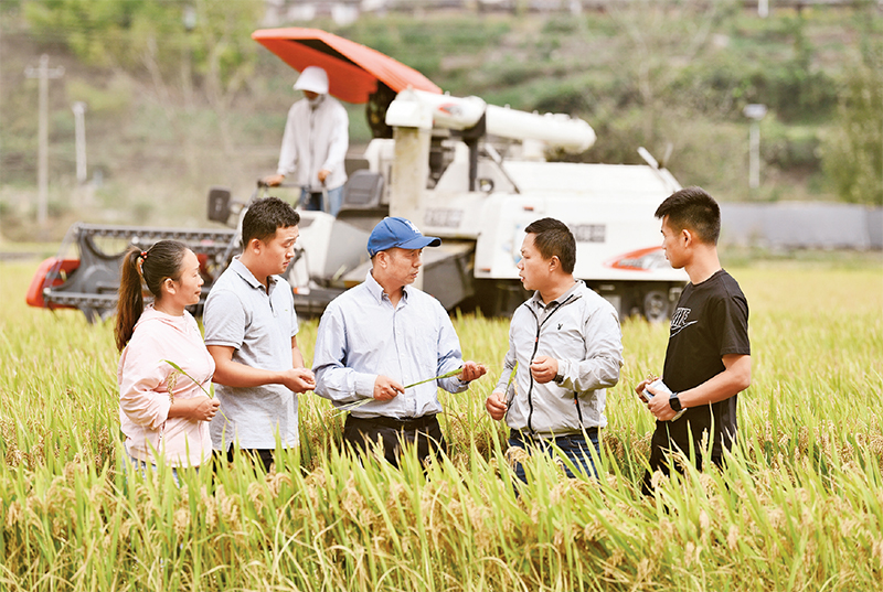 教育部黨組通過政治巡視推動直屬高校黨委扛牢政治責任、強化使命擔當。圖為2021年10月8日,南京農業大學師生在貴州省黔東南苗族侗族自治州麻江縣種植示范基地。該基地是在南京農業大學幫助下建成的,培育出優質稻種“寧香粳9號”。(教育部供圖)