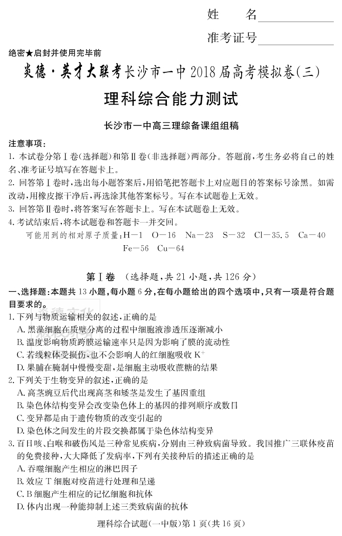 2026年高中寒假作業自主學習作業本·高三年級·生物