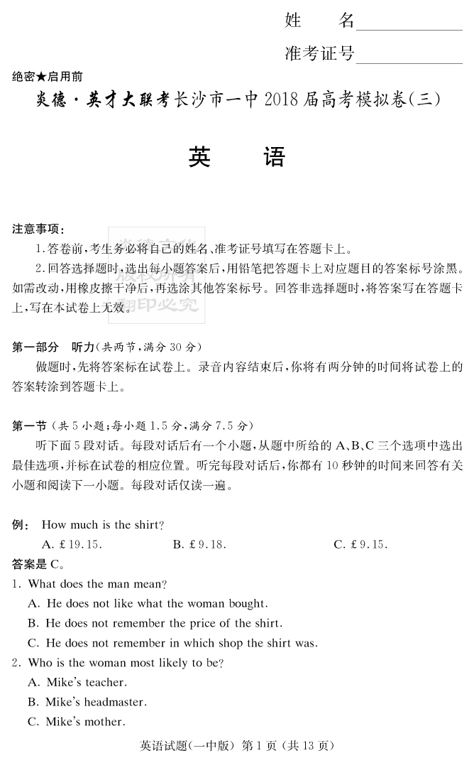 下一篇:【語文】炎德英才大聯考2018長沙一中高三12次月考(模擬三)